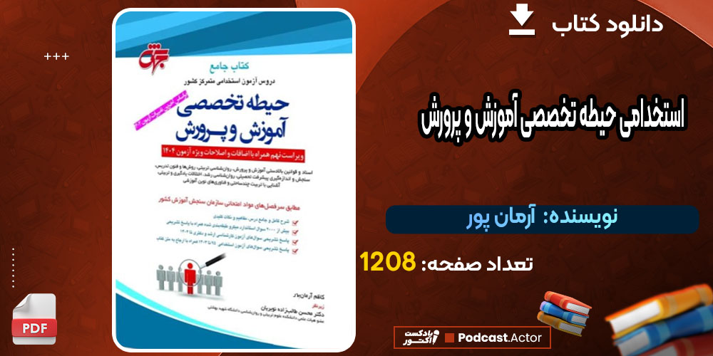📕 وب سایت پادکست اکتور کتاب استخدامی حیطه تخصصی آموزش و پرورش آرمان پور این کتاب به عنوان یک منبع جامع برای داوطلبان آزمونهای استخدامی در حوزه آموزش و پرورش طراحی شده است. این کتاب با ارائه مطالب آموزشی، نکات مهم و سوالات نمونه، به خوانندگان کمک میکند تا با مفاهیم و مباحث کلیدی در این حوزه آشنا شوند و آمادگی لازم را برای موفقیت در آزمونها کسب کنند. همچنین، آرمان پور با استفاده از روشهای تدریس مؤثر، به تسهیل یادگیری و بهبود عملکرد داوطلبان میپردازد .برای دانلود و بهرهبرداری از این منبع ارزشمند، با سایت پادکست اکتور همراه باشید.